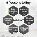 Built with a Digital Inverter, this washing machine uses high-performance magnets, ensuring enduring performance with low power consumption and minimal operational noise.