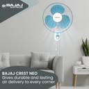 This wall fan is designed with a 100 percent copper motor, ensuring longevity. The motor operates efficiently to provide consistent performance while consuming just 55 watts of power. This ensures that the fan works effectively while saving on energy consumption, making it suitable for indoor use. The efficient power consumption and robust motor design make this fan an excellent choice for sustainable living, meeting daily cooling needs without excess energy usage.